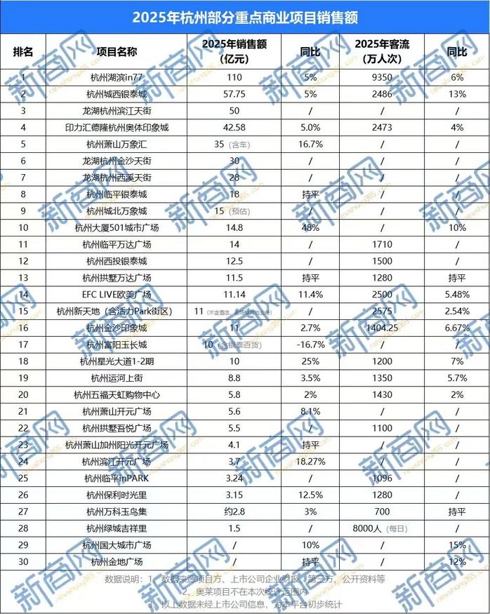 近日,杭州多家重点商场2025年销售额数据出炉。